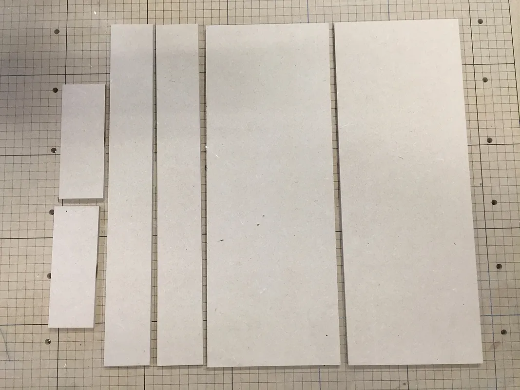 Using 1/4" MDF, you will need to cut the following pieces: