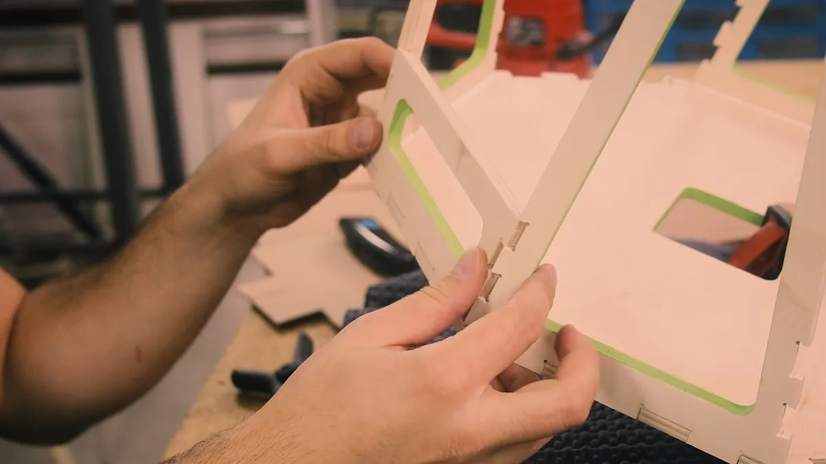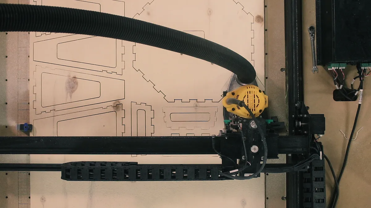 First step is obvious I guess :) As I mentioned this design is meant to be cut in 8mm plywood with a 1/16 inch bit. Otherwise the joints might not line up and the bit won't be able to access the "undercuts" or "dogbone" areas. Carving time is around 45 min so take your ear plugs, sit back, and relax.