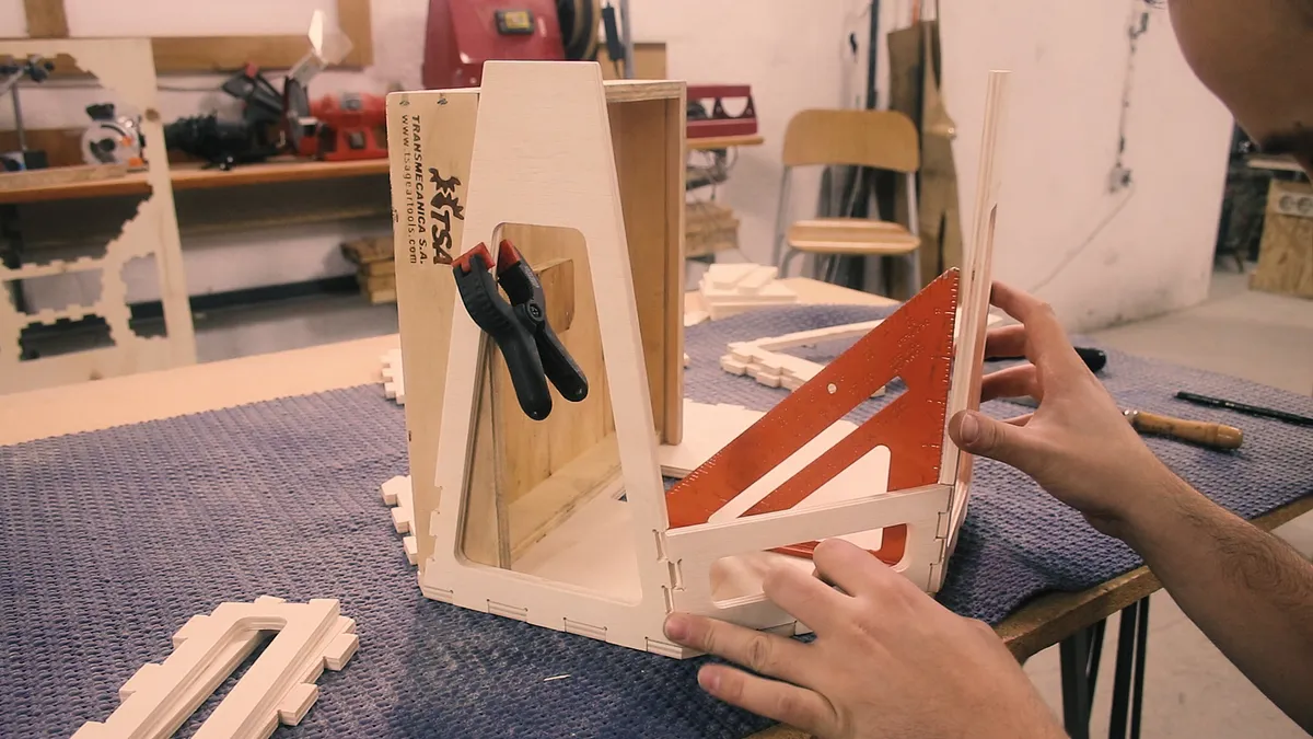 These finger joints are not so straight forward, as the pieces aren't all square to eachother. So in the design I adjusted the finger sizes so the interlocking edges of the diferent pieces would form the main edges of the table from top to bottom. Not sure this makes sense, but the thing is some fingers need indents to interlock with the mating piece. No big deal, just try to fit a piece, sand a little bit where needed and iterate until it goes in. It's simpler than it looks and once you've done one, the rest are exactly the same :).