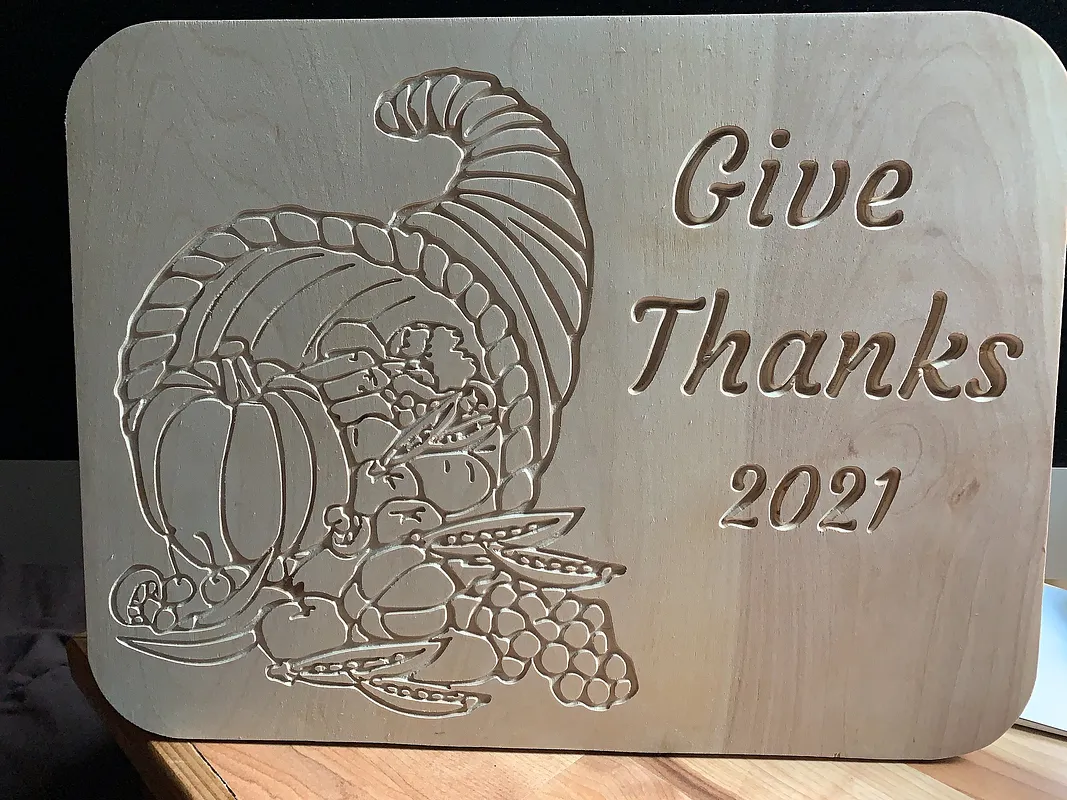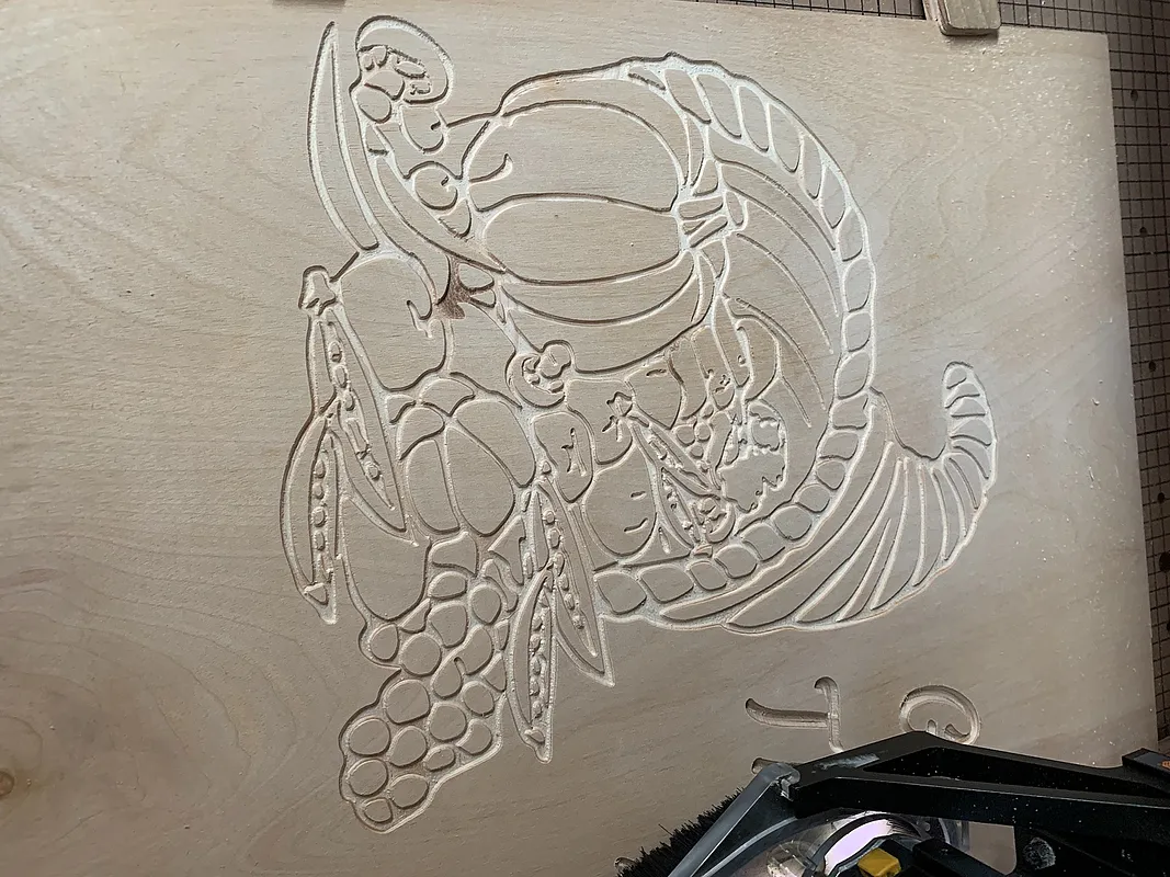 I started out with a piece of plywood odd shaped 500mm X 500mm. The finished project is 19x141/4" . I had over looked the depth of the text It went way too deep. I since set it to 2mm.