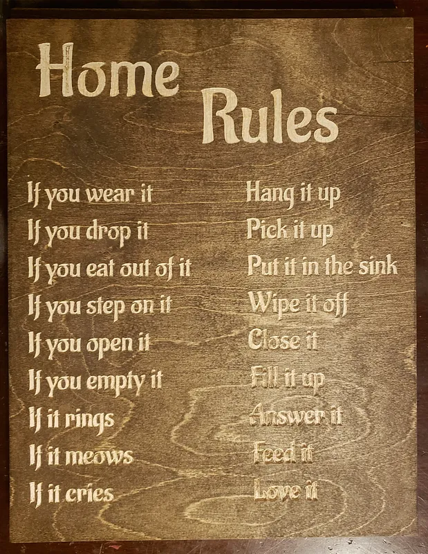 Kitchen conversion chart and house rules