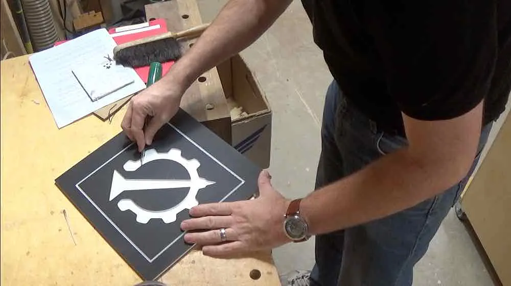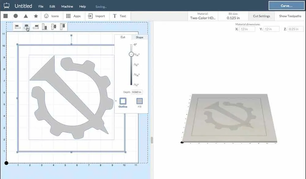 Note that I set the cutting depth to 1/16". It really only needs to be deep enough to cut through the black surface to reveal the white beneath. So you can set this as shallow as you like. In hindsight I would set it shallower if I did this again.