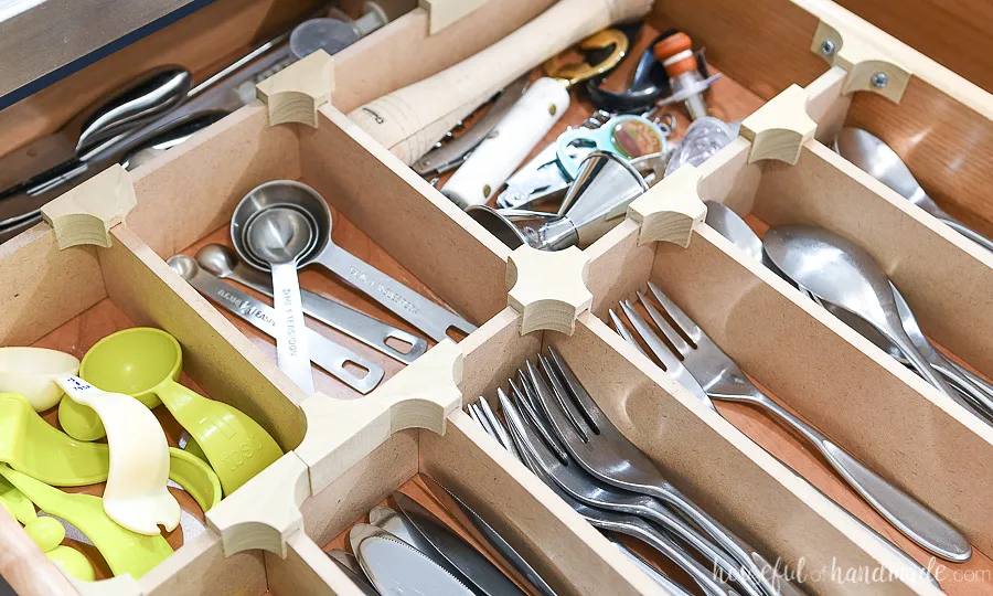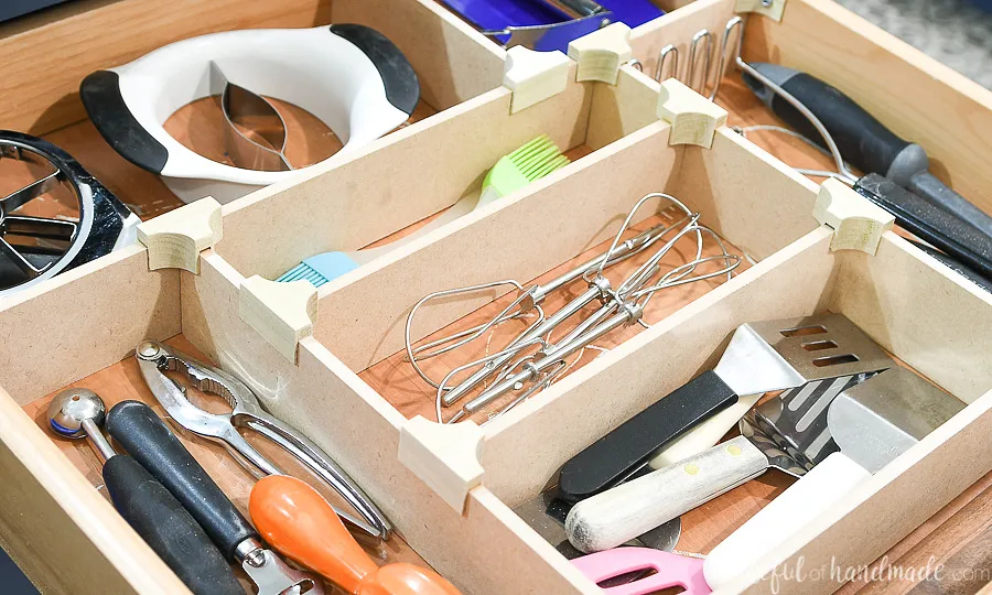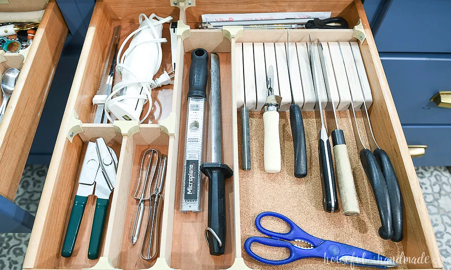 For full detailed instructions on building the drawer dividers & knife block, check out "https://housefulofhandmade.com/diy-drawer-dividers/":https://housefulofhandmade.com/diy-drawer-dividers/.