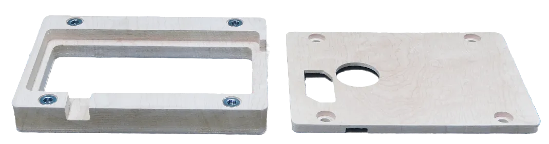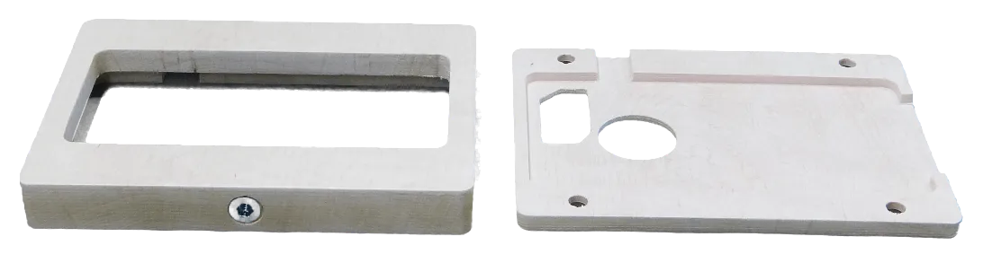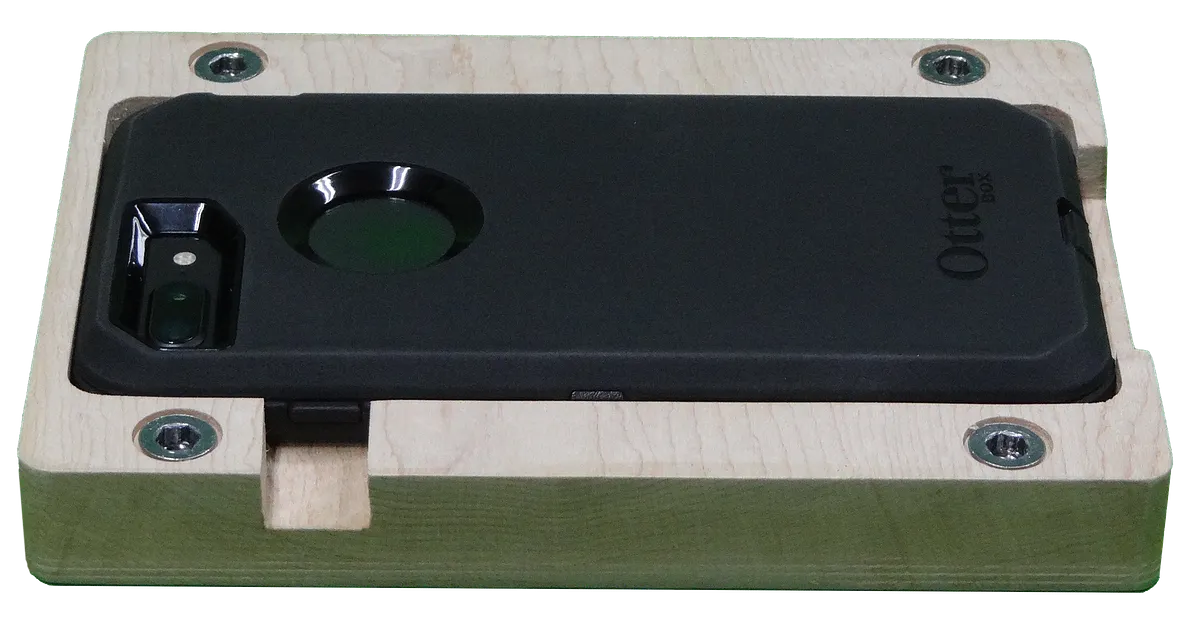 A case to hold my iPhone 8 Plus with Otterbox Defender on a tripod. The side borders needed to be wide enough to accommodate the 1/4-20 inserts used to join the 2 pieces together. Because of the number of different sizes of drill bits used I did not use the XC to drill the holes. #2 of 2 parts