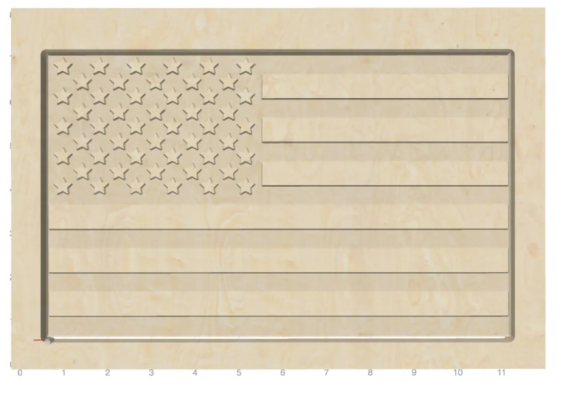 This is a small American Flag carved into a single piece of Maple. The flag is designed to fit on a small CNC machine like the 3018 or any machine with at least 300mm x 180mm which is approximately 12" x 7". Use double sided carpet tape to hold the material to prevent hitting clamps.