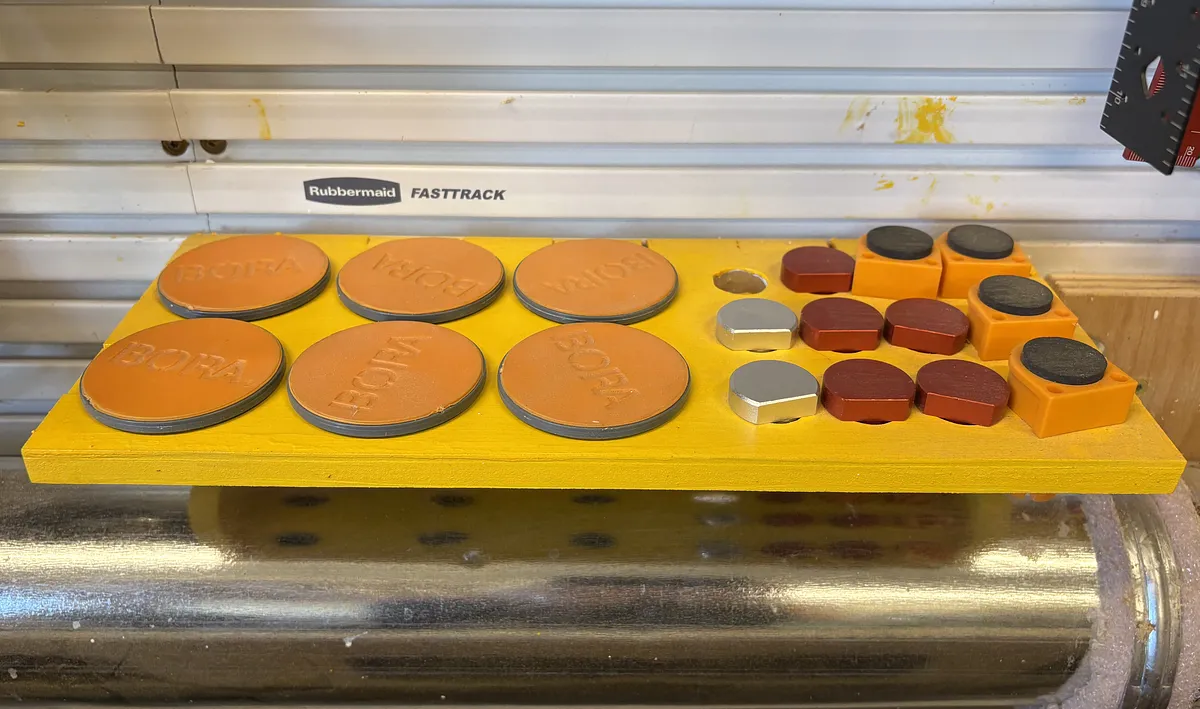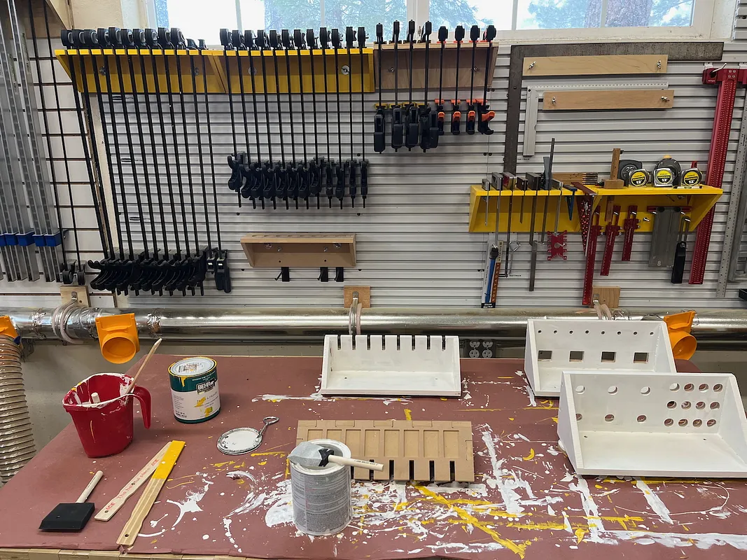 A set of CNC-cut tool organizers designed to work together as a clean, modular shop storage system.