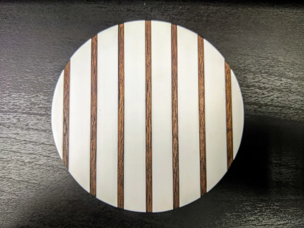 This is a pretty straightforward project. You can find more information over on my tumblr about this project: https://fredhousel.tumblr.com/post/187165690515/corian-walnut-coaster