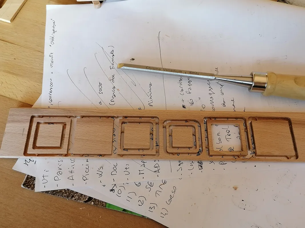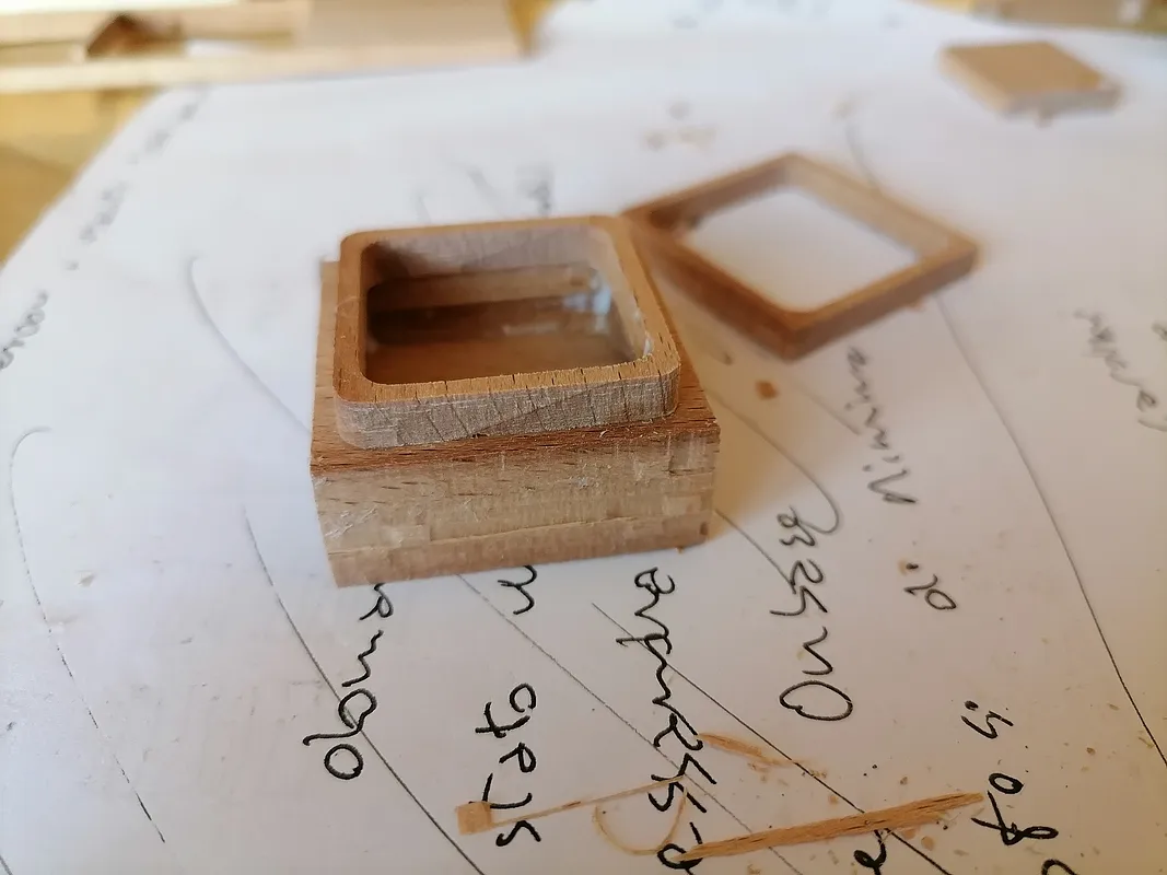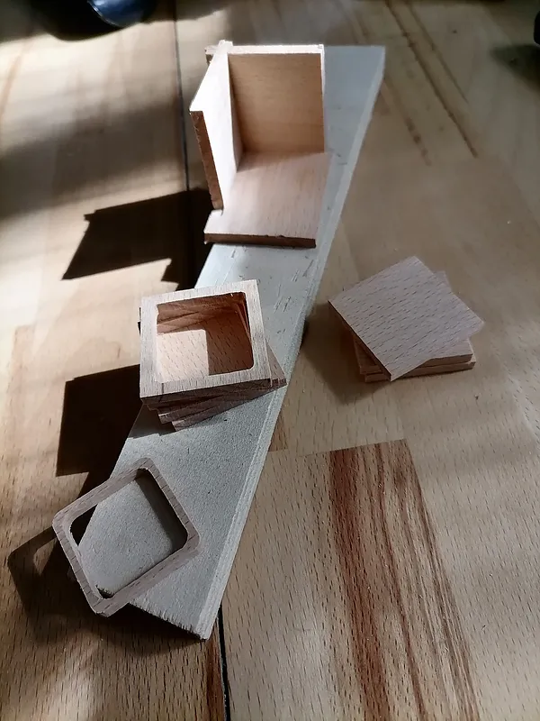 Ring holder, made from several layers of 5mm beech strips. black felt can also be added for finishing