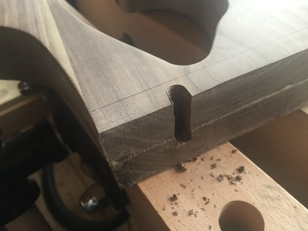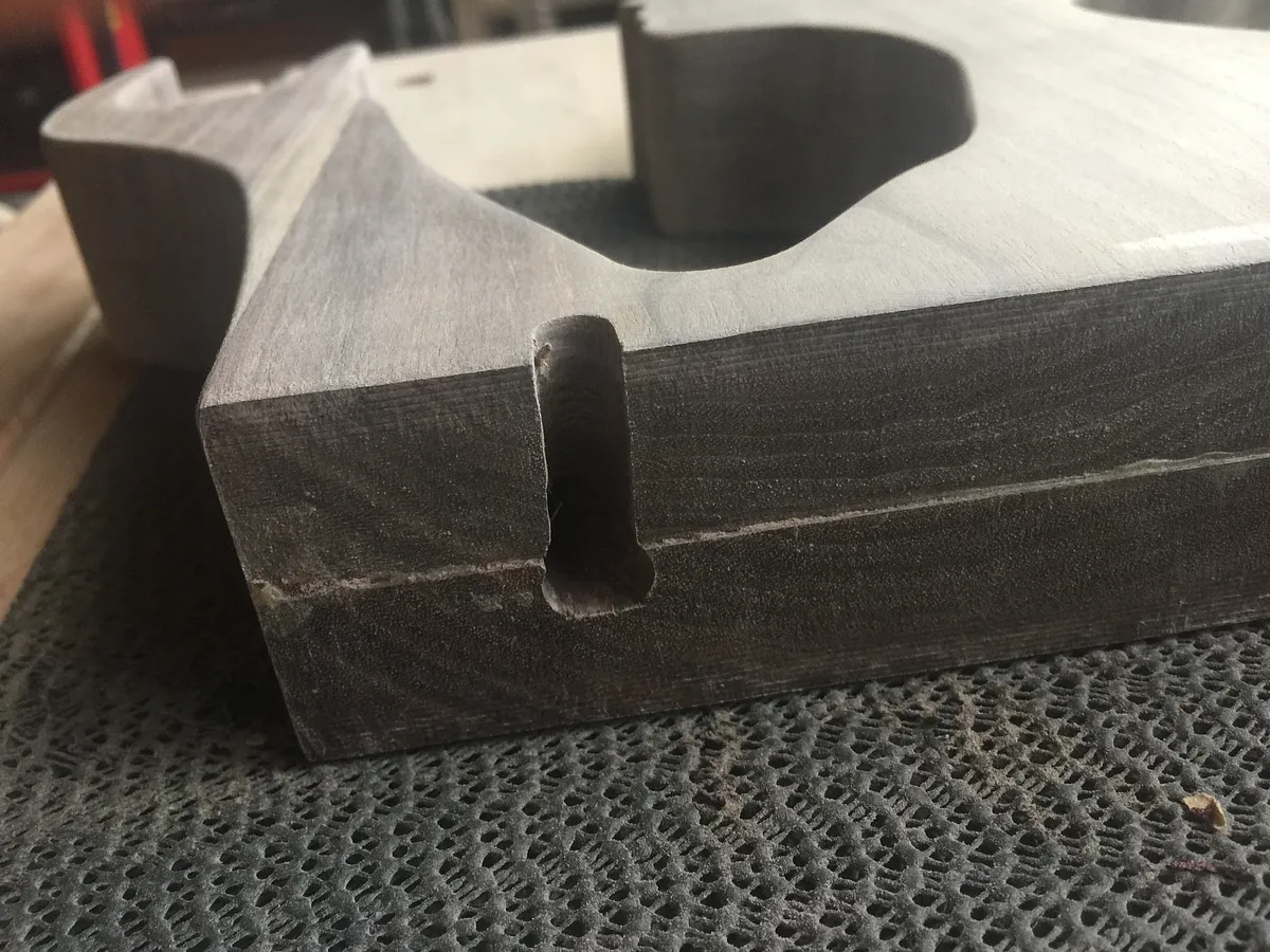 I added a shallow groove to 1 of the shapes to give room for the wire from the lamp holder to be threaded through later. I also added 3 holes to recieve wooden dowels to help with alignment when gluing up. You wont need to worry about this as they are already added in the easel link.