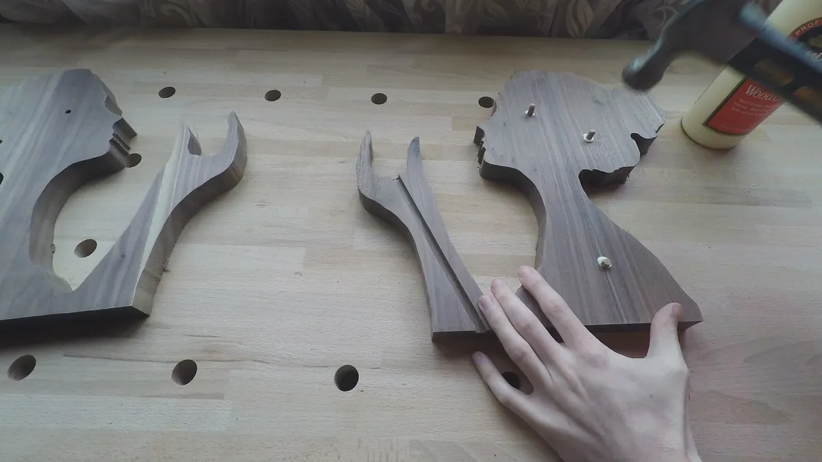 I decided to cut the lamp shapes from one large glued up piece of Walnut. Of course you can use any material you like to create this lamp, perhaps a different type of wood, MDF, Plywood or even plastic, you could really change the look by using different materials.