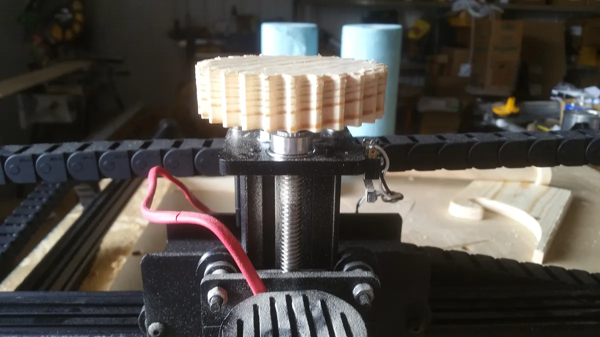 This knob fits onto the hex nut on top of the Z axis acme screw. Allows for easy turning of the screw for adjusting bit height.