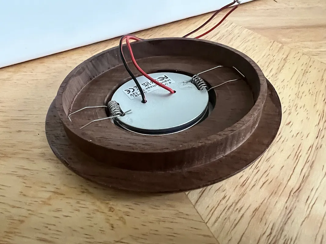 I fabbed these up for my boat, as I had very little room between the ceiling panel and the fiberglass, so I wanted a custom housing for the light to sit in, and a strong support for the spring arms.