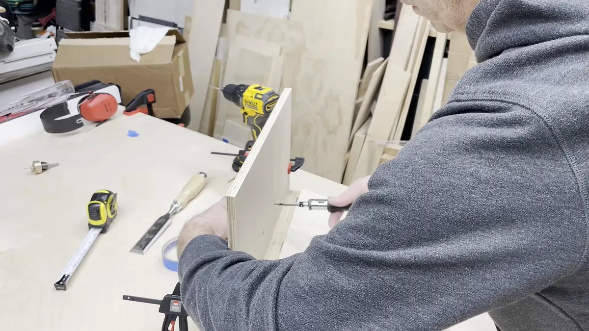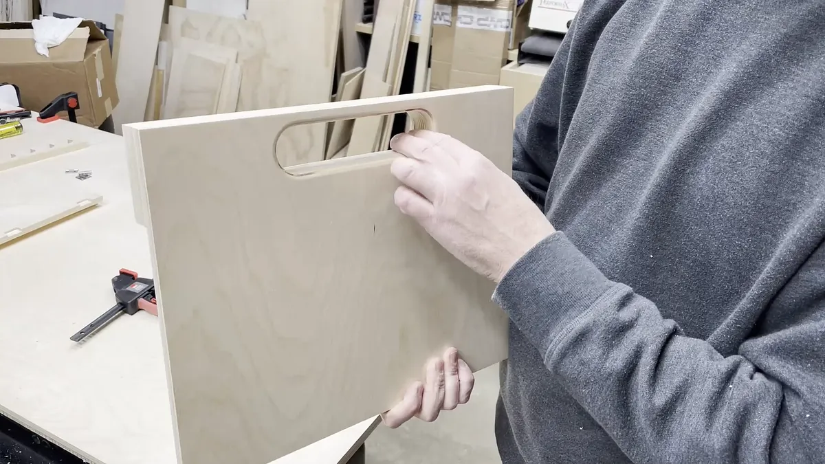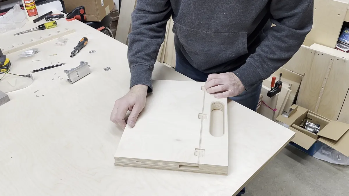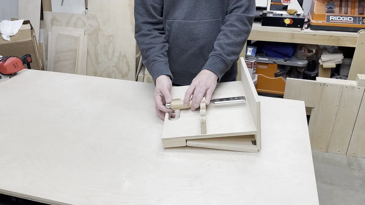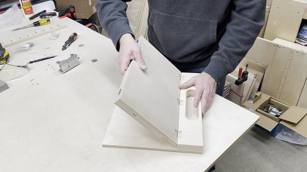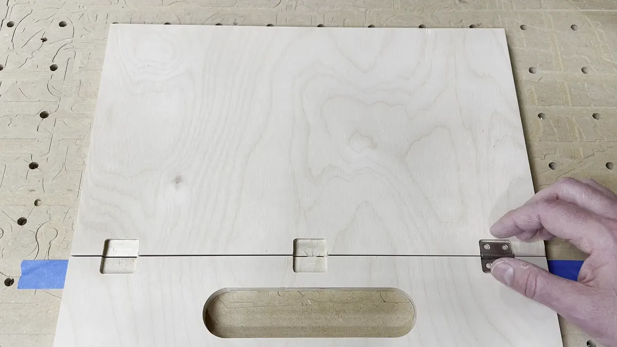 Angled Board The angled board is just a piece of 1/2" baltic birch plywood with hinge recesses at opposite ends and on opposite sides.