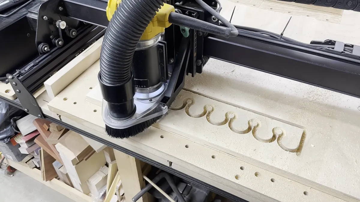 I designed all of the pieces so 1/4" bit could be used to cut everything out. I used a downcutting bit so there would be less tear out on the top side of the piece.