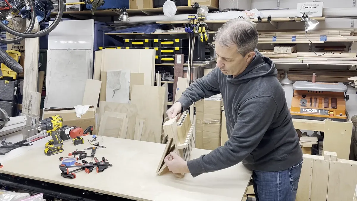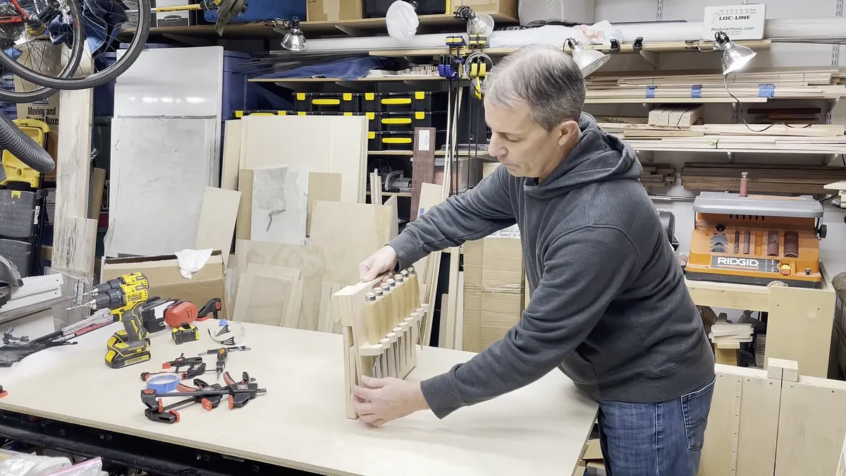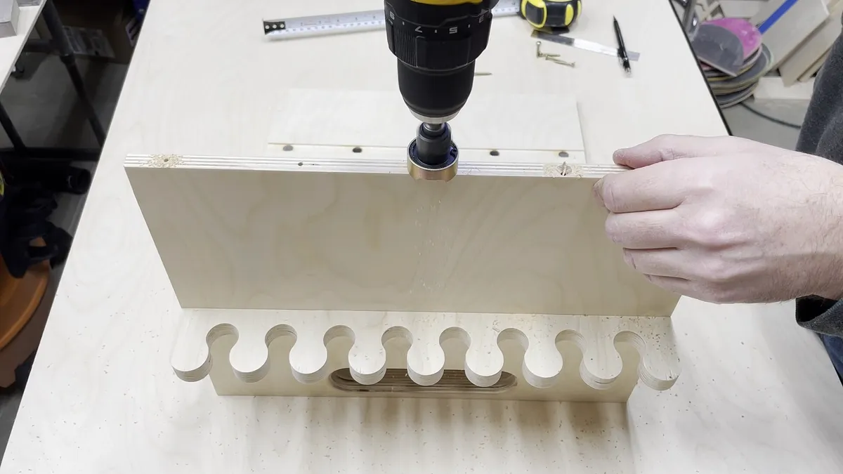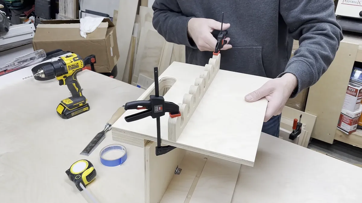 It helps to use a piece of matching wall cleat longer than the chisel rack to make sure the two individual pieces are aligned properly before you attach them. I only used the two screws in each piece and did not glue mine in place.
