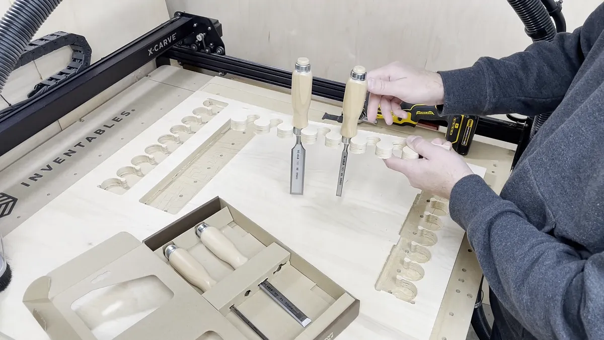 Chisel holder The chisel holder is created by using the Replicator app within Easel to copy portions and save you a lot of time trying to place elements in the correct position.