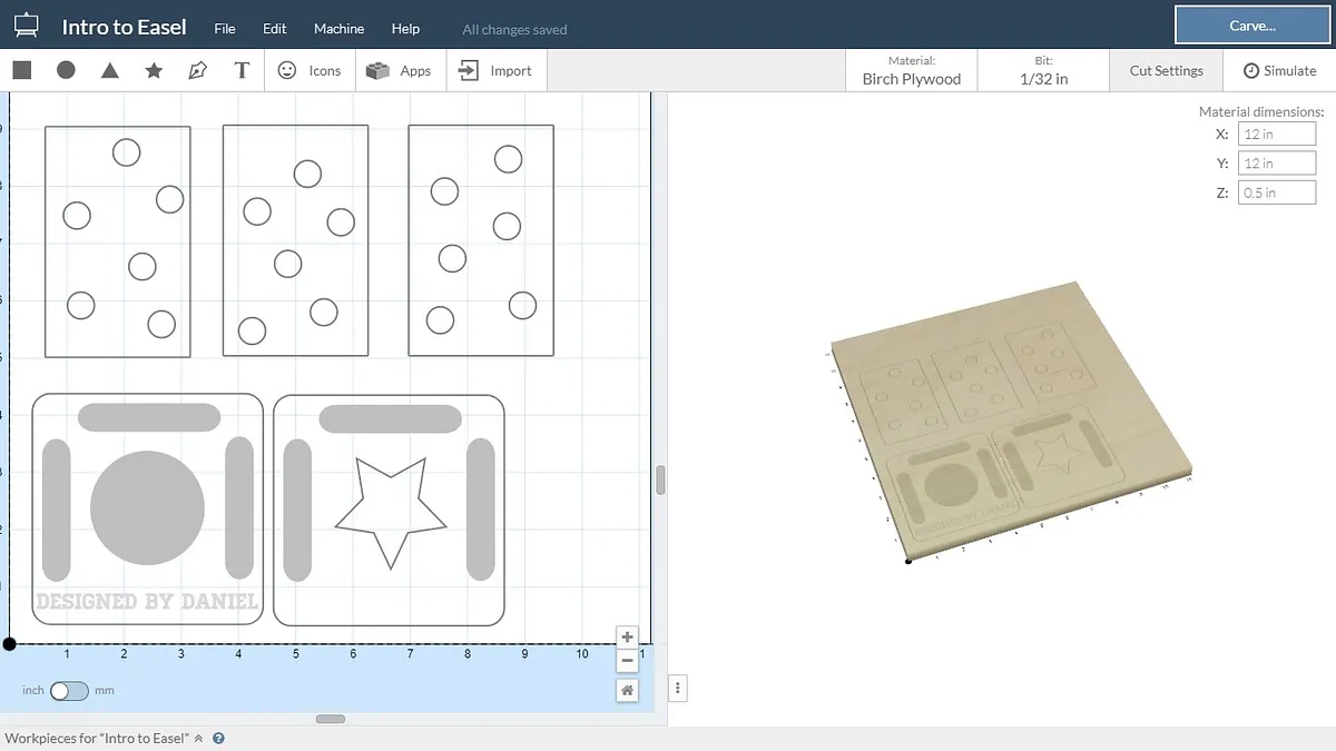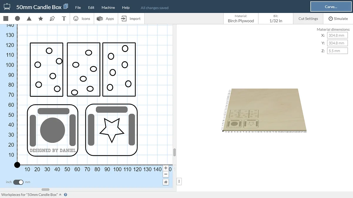 Cut with 5.5mm ply & 1/32 in drill bit.