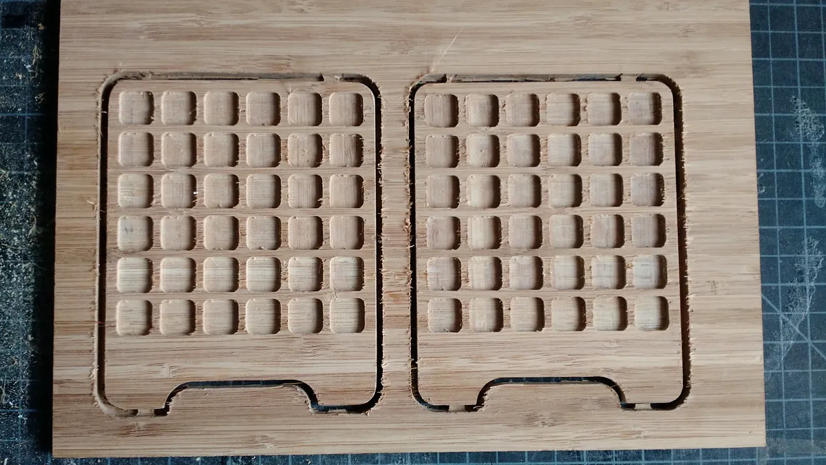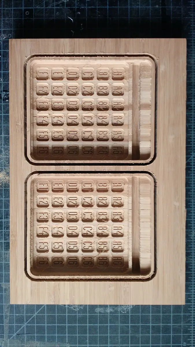 Change to a 1/32" bit to engrave the letters and numbers into the grid for the lid