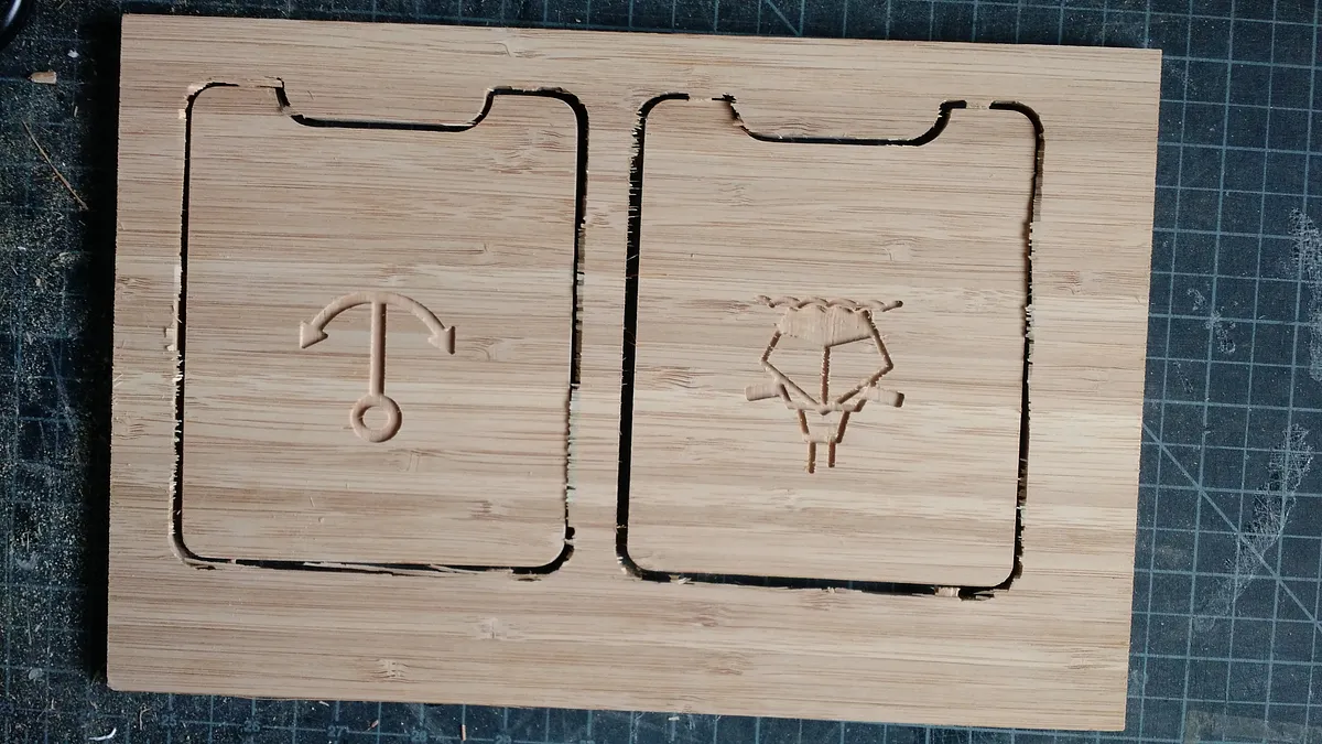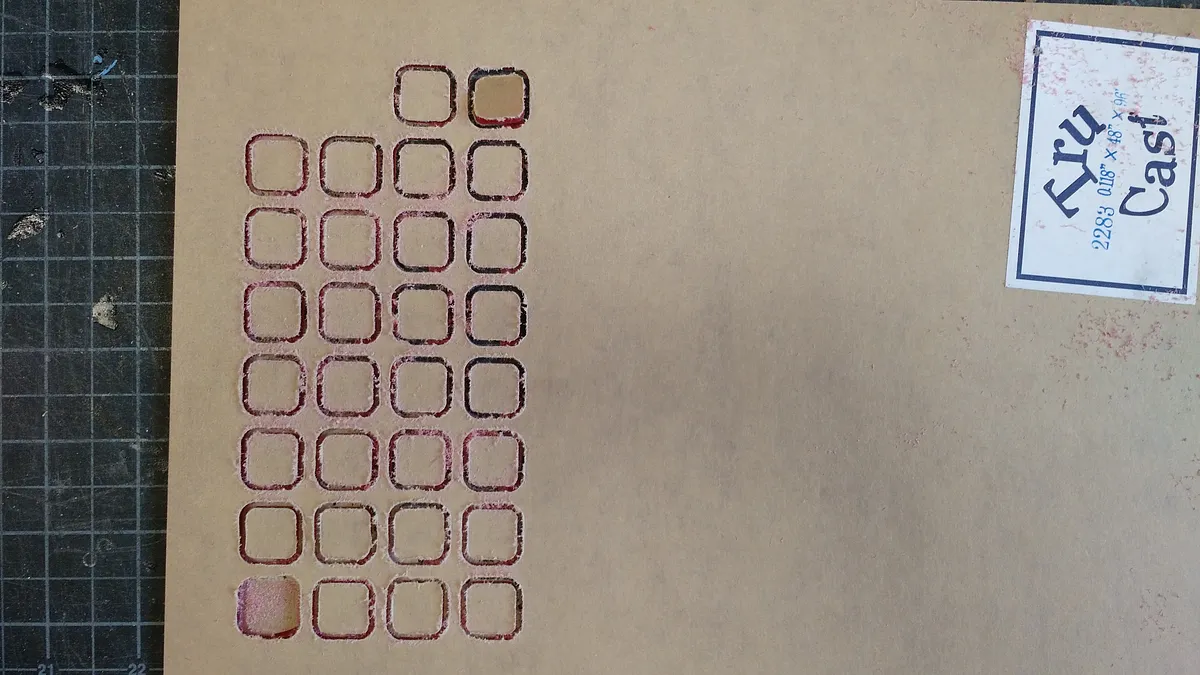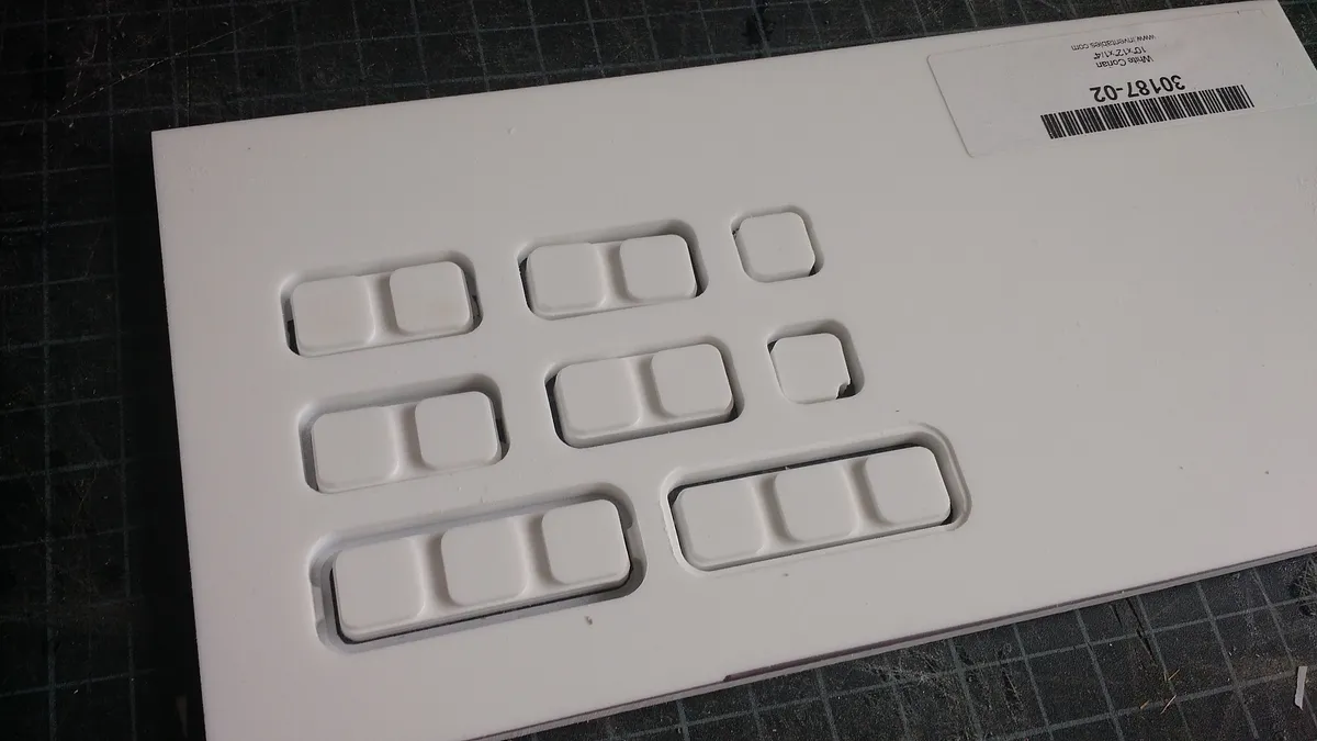 Mill the tiles from 1/8" material. We used matte black acrylic. This is a good cut to use double sided tape.