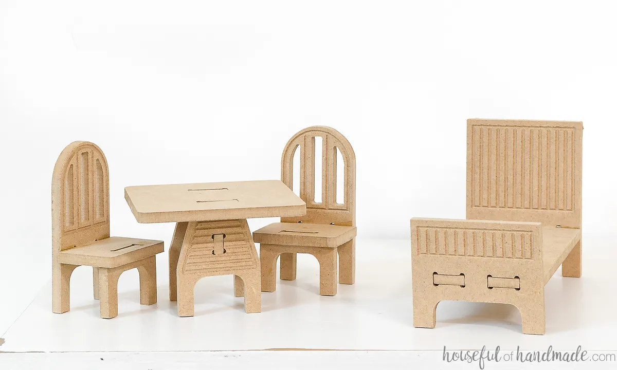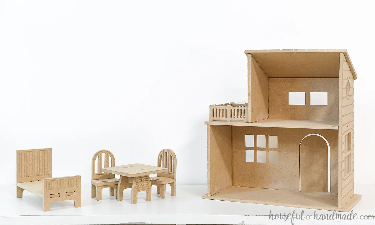 Make a small dollhouse perfect for 4-5" dolls completely cut out with the X-Carve. Use a v-carving bit to add details. The entire dollhouse and furniture is cut out of 1 24" x 28" piece of 1/4" MDF.