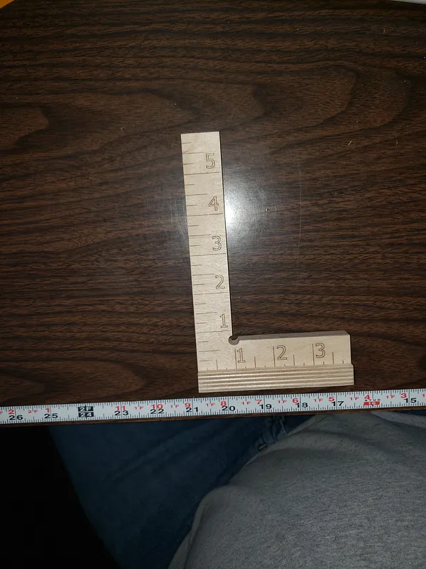 I lost my combination square so I made this for a quick solution. The markings on mine were made with my laser but you can use a 1/32 bit as well. Make sure that the left side is nice and flush for a straight line.