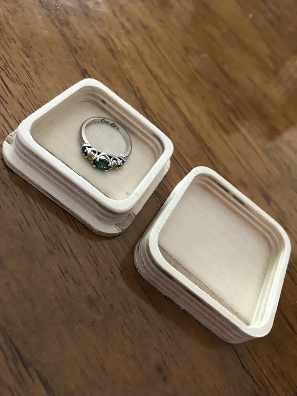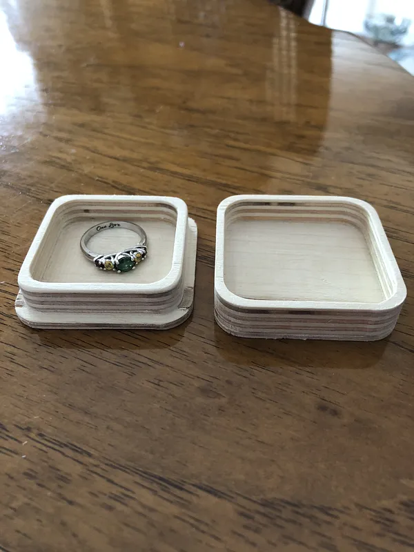 These will not fit together properly is modified. They have to be remade with a specific formula. If you try to resize them, even if you resize them together the exact same in every way, they will not fit together properly. Also, YOU HAVE TO USE AN 8TH IN BIT WHEN YOU CUT THEM. The formula I create to make these was made using the measurement when cut with an 8th in bit. This is because some paths are cut outside, some are on path and these paths with the bit size determines the wall thickness and placement. I haven't tried resizing them and then cutting them, but I have to imagine that since everything is changing and the bit size remains the same, then I have to assume the wall thickness and placement must also change. The only thing that is changeable is the material thickness and the depth of the POCKET cut only. The shoulder on the box bottom should stay at or about the same, though I assume making it thicker shouldn't matter too much and would only be necessary for personal preference, or to make the overall height of the box taller, or the overall pocket cavity bigger between the box bottom and lid. I'll be uploading the method I use to make these shortly, that is if there's a demand for it. It's not very hard and it's laid out in plain sight in the predetermined measurements used in the files provided.