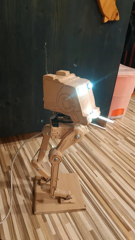 A lamp from 2016 year for my son. foto is version 2.0 with servos and lights. Its made from 20mm oak wood and 0,5mm polywood