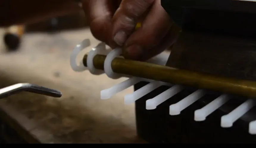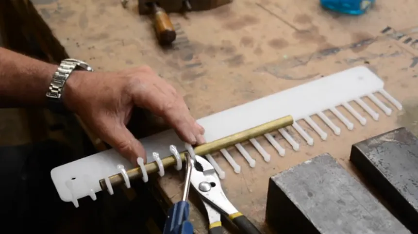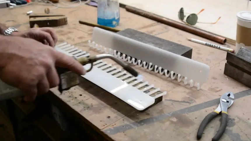I tried two different approaches to heating and bending the hooks. The first one was time consuming where I heated each individually and wrapped it around a pipe. Then I modified that approach and held them with a pliers. On the second set I heated both sides first and curled them all together to a curved but not final state. Then I reheated each hook and only had to move it a little to get it into the right position. That approach was a bit faster.