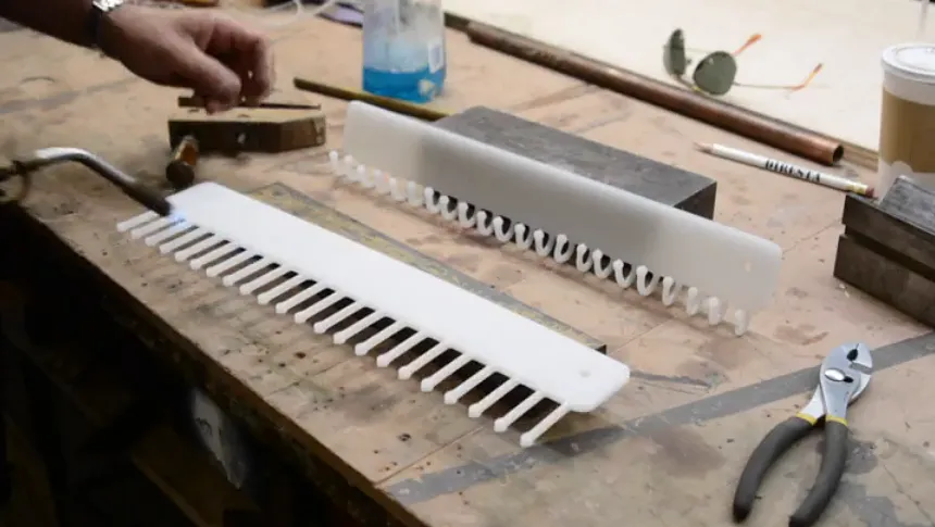 I used drew the hooks in 3 sections. I then copied and pasted the bottom part over and over until had enough to fill the rack. Then I used the combined path feature to make it all one object. The next step was to export the file as an SVG.