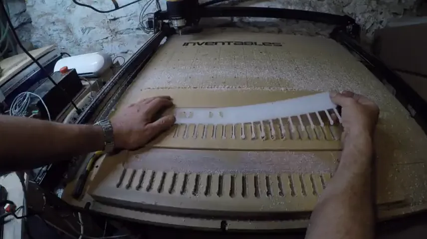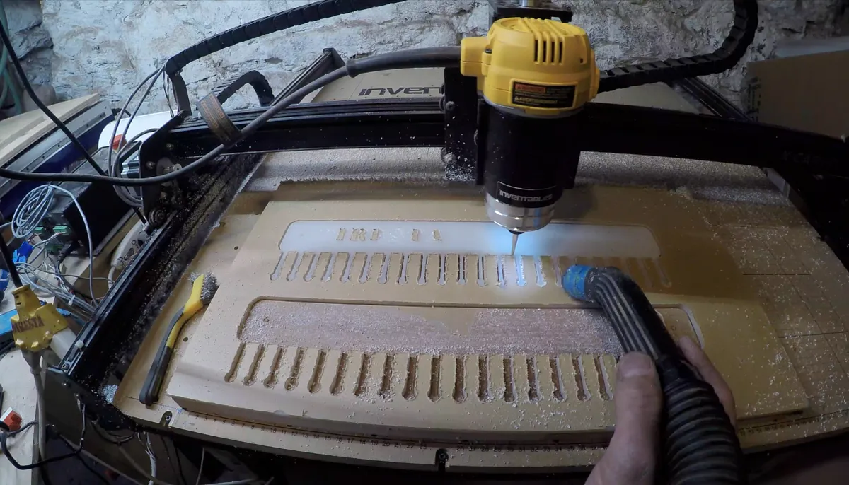 Once you have it where you like in Easel go ahead and click carve. Acrylic can be a challenging material to carve because it can remelt back on the bit if you don't have the speeds and feeds just right. I needed to use the 1/32" bit to get the side of the A in DiResta but if you use a different logo or take off the logo you can use a larger bit that is less likely to break. The 1/32" bits are very fragile.
