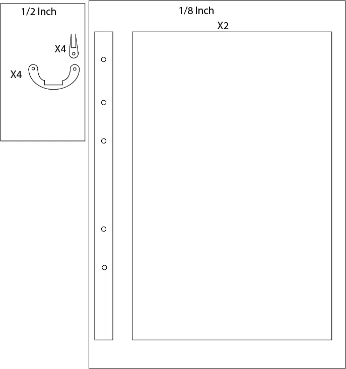 Cut out all the nessicary parts. The hinges should be carved out of 1/2 and the other parts out of the 1/8.