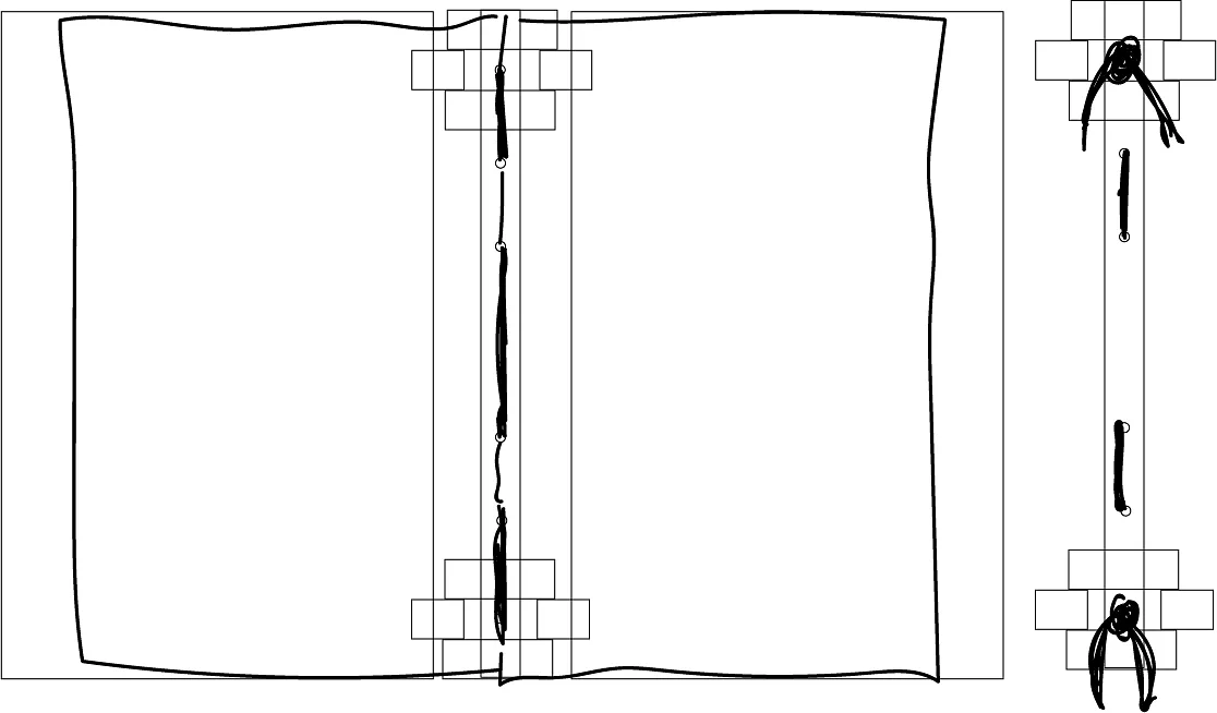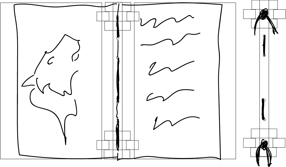 take some sheets of 8 1/2 X 11 and fold them in half to create a crease. stack a few pages together and place them in the book. punch hole in the pages using the spine as a guide. thread string through the holes to attach them to the cover