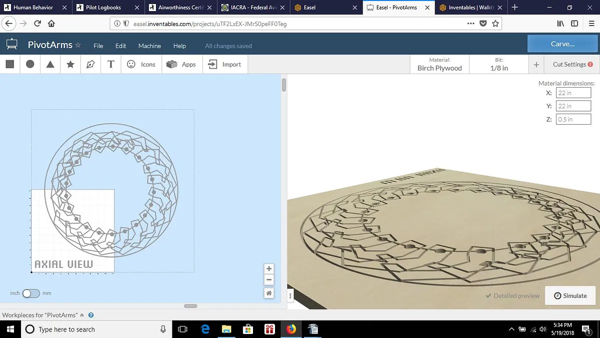 Example pivot arms and a notional axial view after assembly showing 21 arms. Would be arranged as 7 arms per section, 3 rows deep, off-set such that the axial view appears as show on the second page of the project.