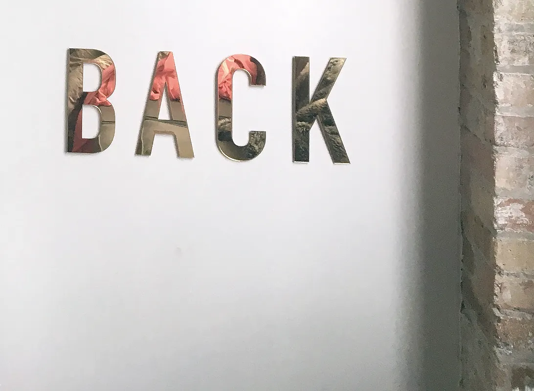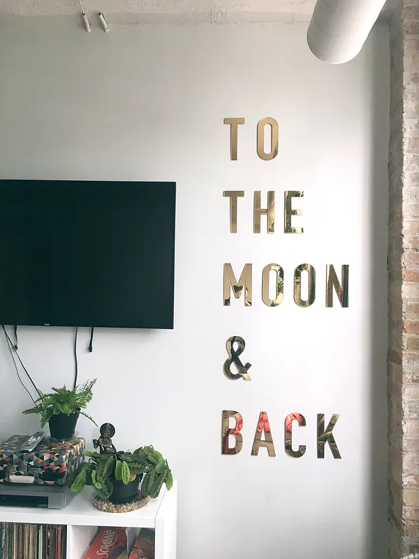 Carved using mirrored gold acrylic—this is my largest lock-up, yet. This simple moon-inspired saying is set using Din Bold Condensed, an ampersand, and a barely designed left-alignment.