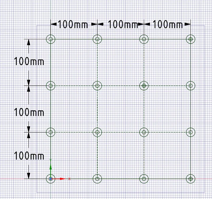 Mounting Holes for Wasteboard 19mm 16 Holes 100 mm Apart over 300 x 300 mm