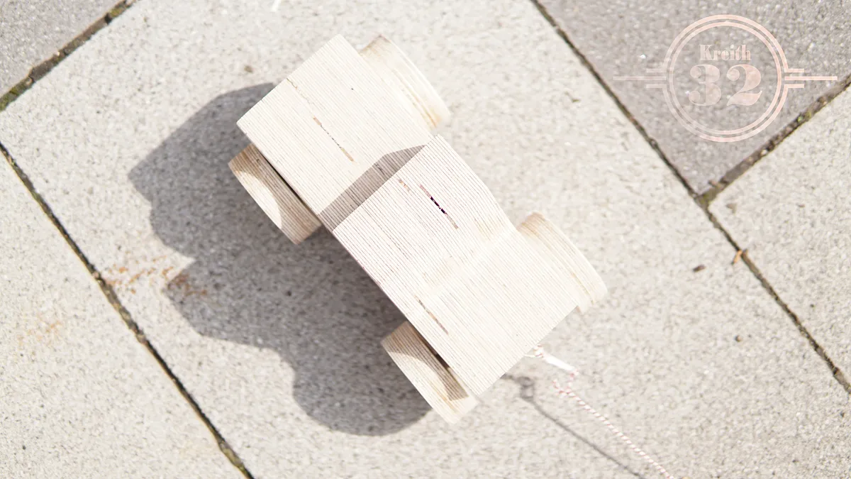 At this time you add the rope. You need a holder on the car to get the rope fixed. I used a frame holder for this.