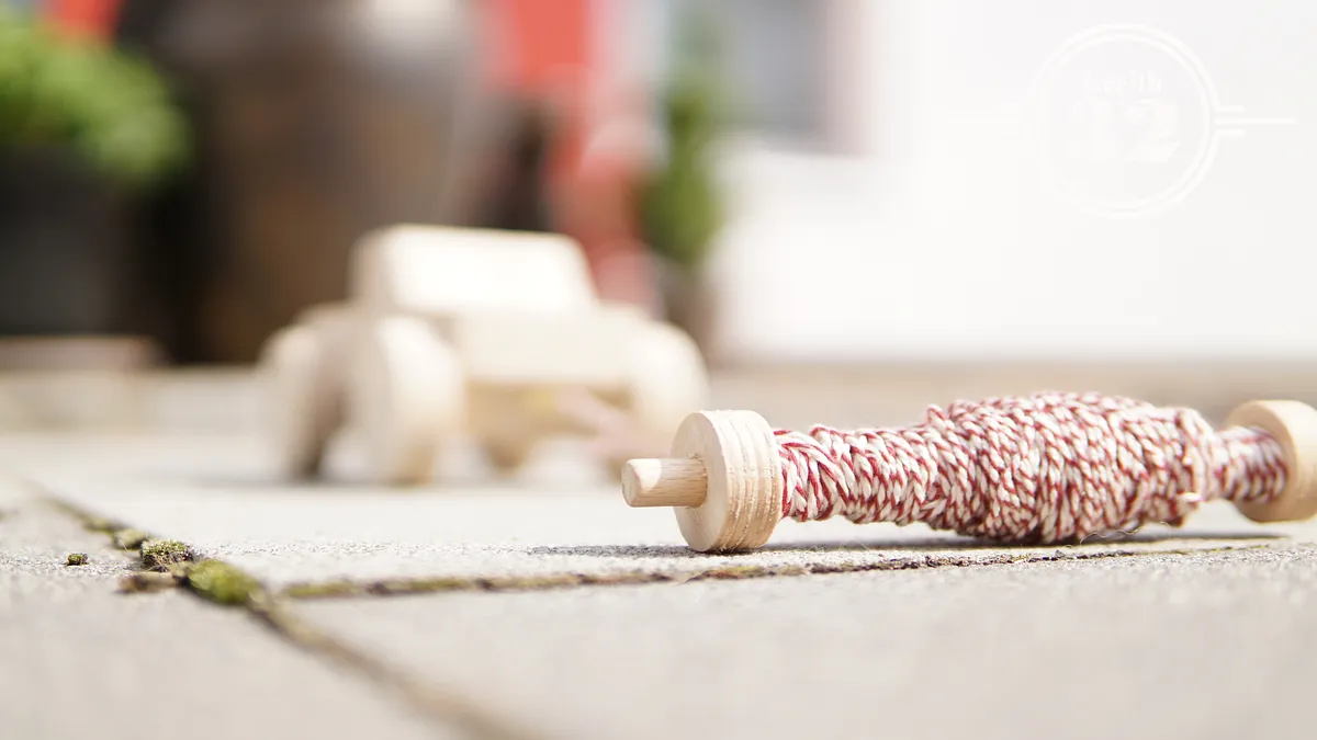 Afterwards you take a left over round stick, put the "small tyres" on it and you have something to roll the rope on.