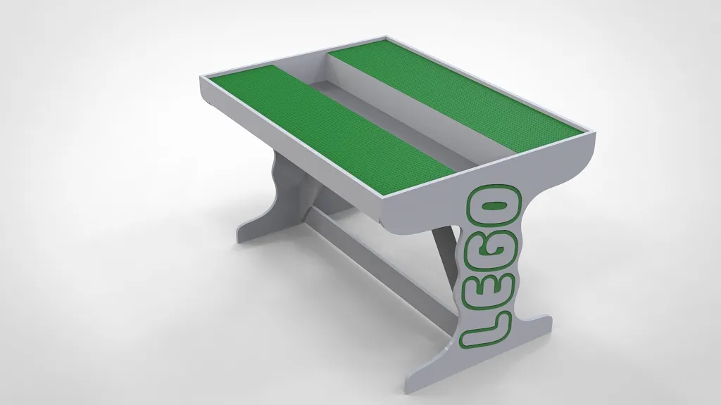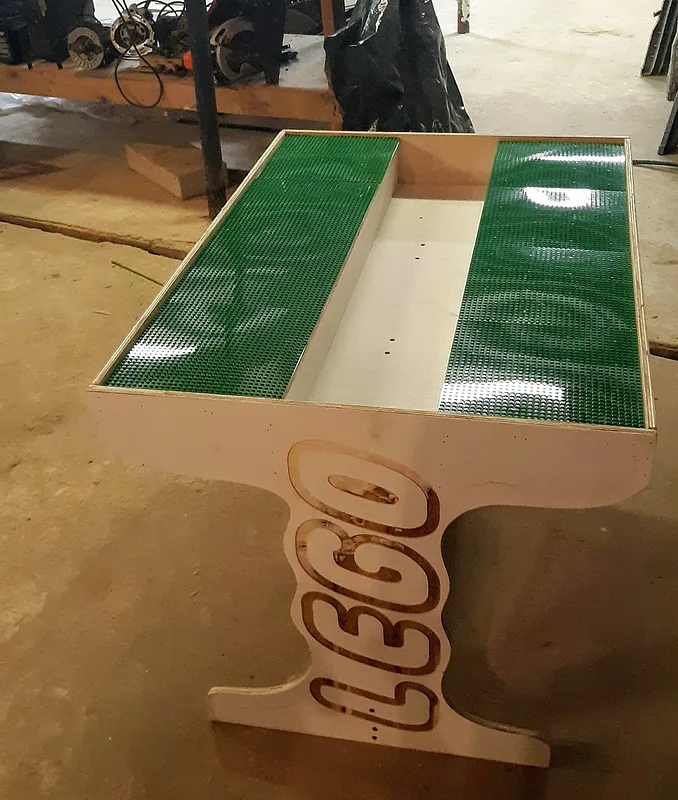Could use refinement. But it was a one day project other than design and he's stoked. Trough in center to hold Lego's.