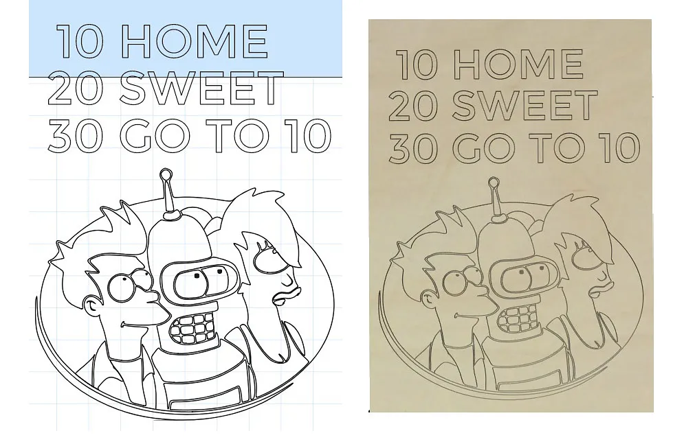 This is cut out of a 1/4" sheet that is 10"X14" using a 1/32" bit.