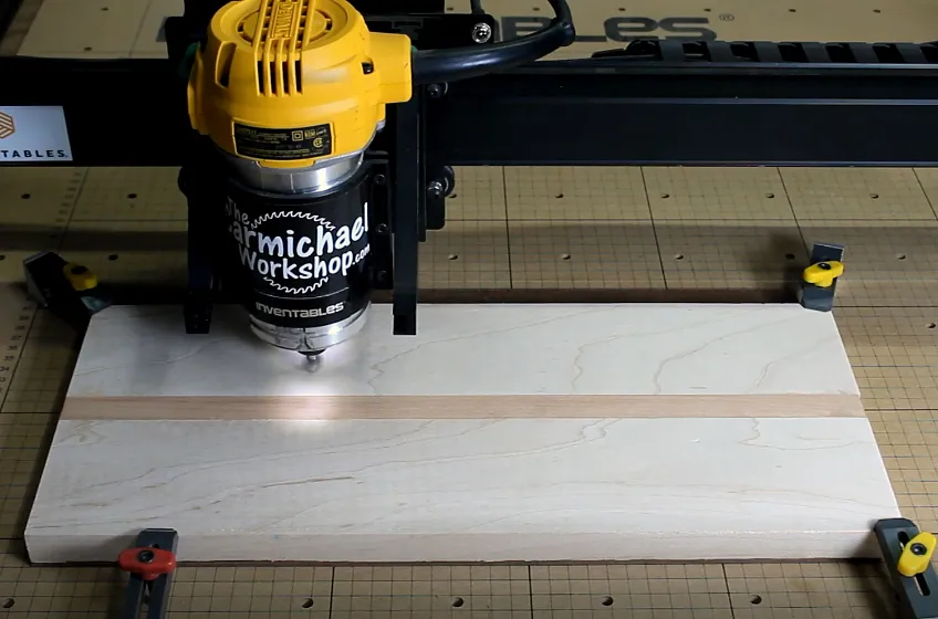 If your project has any text or design library elements that require EASEL PRO V-Carving, I recommend doing all V-Carving first. I used a 90 degree V-Bit. You could place the V-Carve elements on a separate workpiece, or you could delete all other elements and undo the delete after you finish v-carving to bring the other elements back.