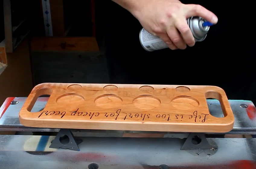 Beer flights will be around a lot of moisture and condensation. This makes choosing a finish a real challenge. No matter what you use, plan on refinishing or replacing a beer flight in the future. The length of time that it lasts depends on how frequently it's used and how well it's cared for.