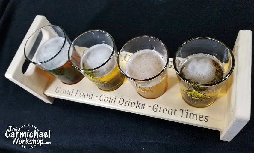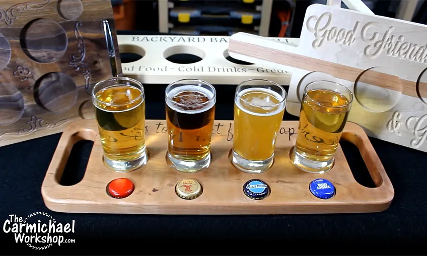 Enjoy using your beer flight at your next party or outdoor barbeque! These are sure to be a big hit with your guests. I hope these different beer flights gave you some good ideas that you can use in your designs. It was fun experimenting with V-Carving, as well as incorporating fun text phrases and adding other hardware to them.