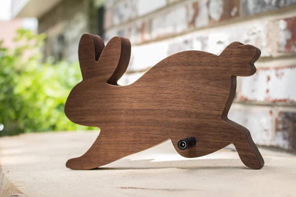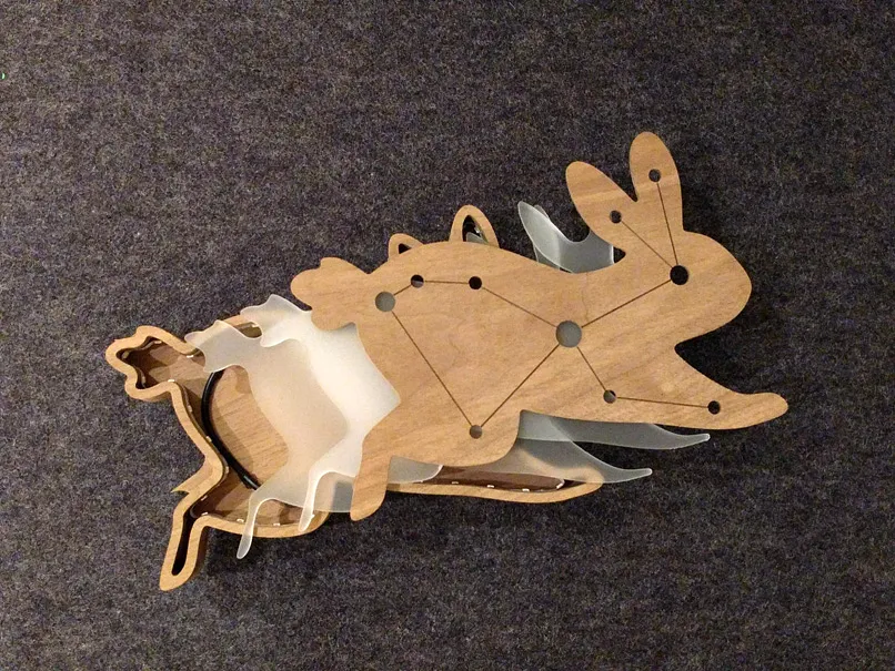 Using a fresh sheet of walnut, carve "Back piece" with the 1/8" downcut bit. I used settings for the 1/8" upcut bit. Note: The circle located on the back leg of the rabbit is an exit hole for the light cord. If you're using a different cord, you may need to modify the hole's diameter.