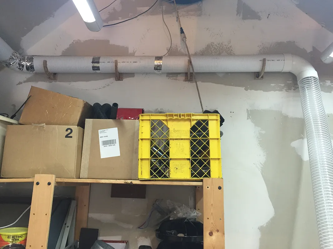 These hooks are shaped to support common 4" drainage/vacuum pipe. Cut in nominal 1/2" stock. The two wall pieces fit around the hook to anchor it without glue. the clearance above the pipe is tight, so a long screwdriver bit is helpful.