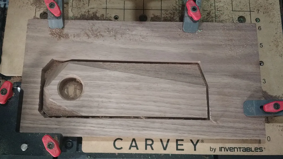 Before removing the design from the platform you can change to an engraving bit and inscribe your own logo or name onto the top flat surface. I would recommend aligning it to the bottom right corner for a nice balanced aesthetic.