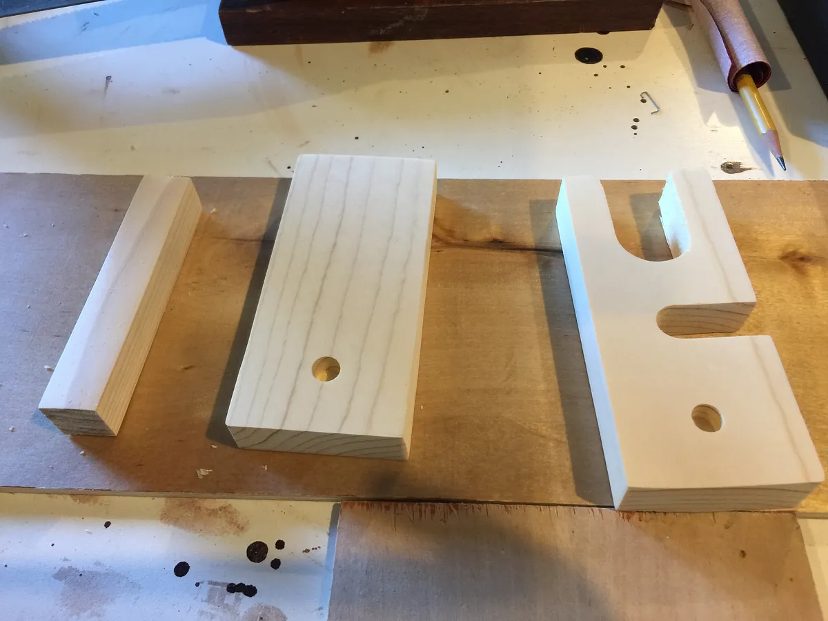 Sand all the pieces. I only have a mini CNC machine, so it took a while to cut out and the edges were pretty rough. I started with 120 grit and finished with 220 grit. I then used a 1/8 inch round over bit on the router to break all the edges. Then used a 1/4 inch round over on the inner brush holder. This fit the contoured handle of the brush nicely. I also used the table saw to cut the notch in the post. I used a drill press to make the holes in the post, but a regular drill would do just as well. I used 3/8 inch diameter dowels, but you can use whatever you have, just make sure you adjust them in the base and top as well.