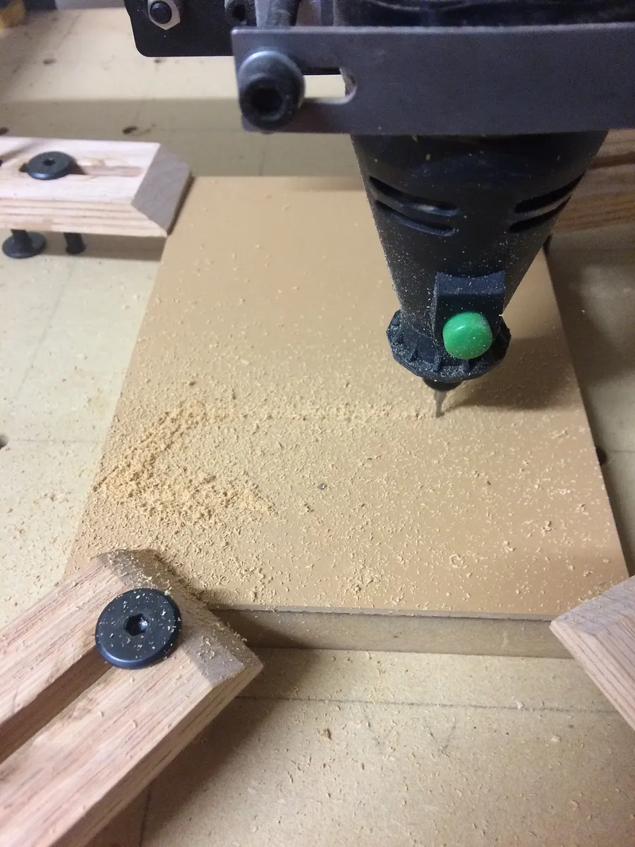 Secure your linoleum block to your wasteboard and set easel up and start cutting! I used a 1/16" Two Flute Upcut Endmill. It worked like a charm.
