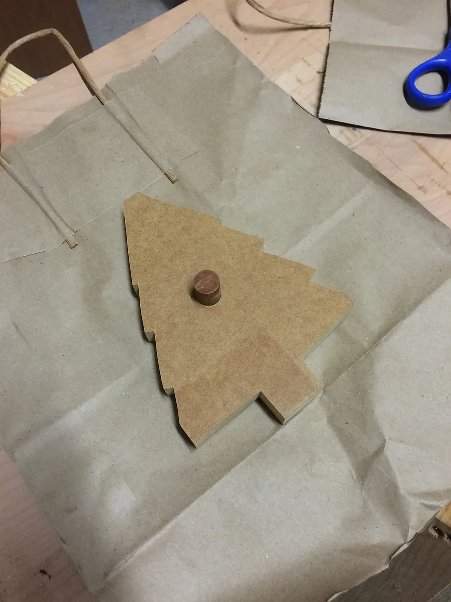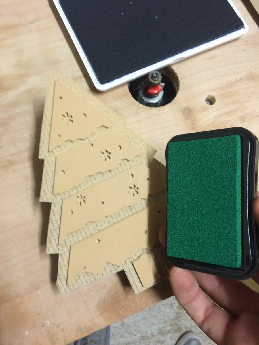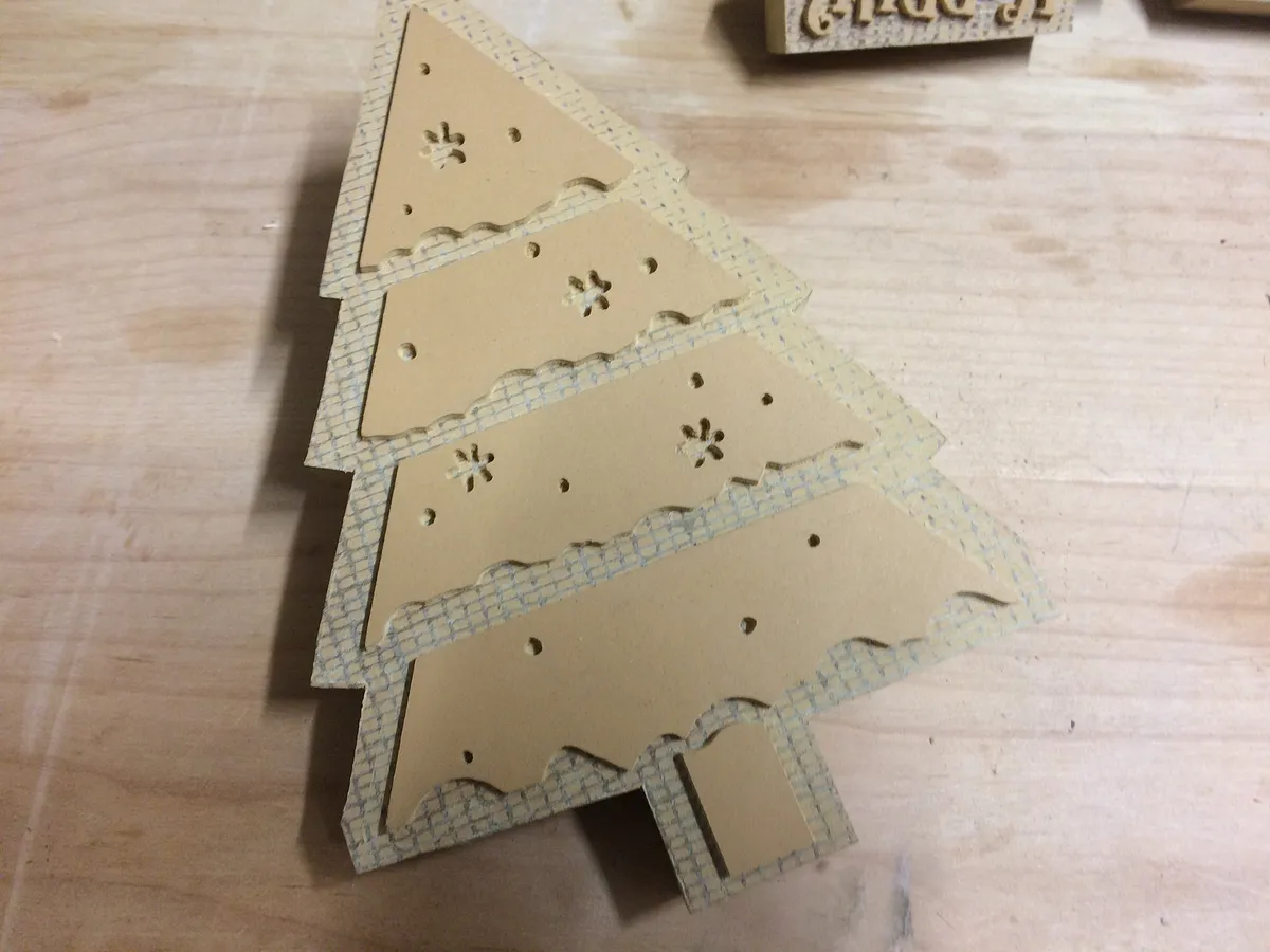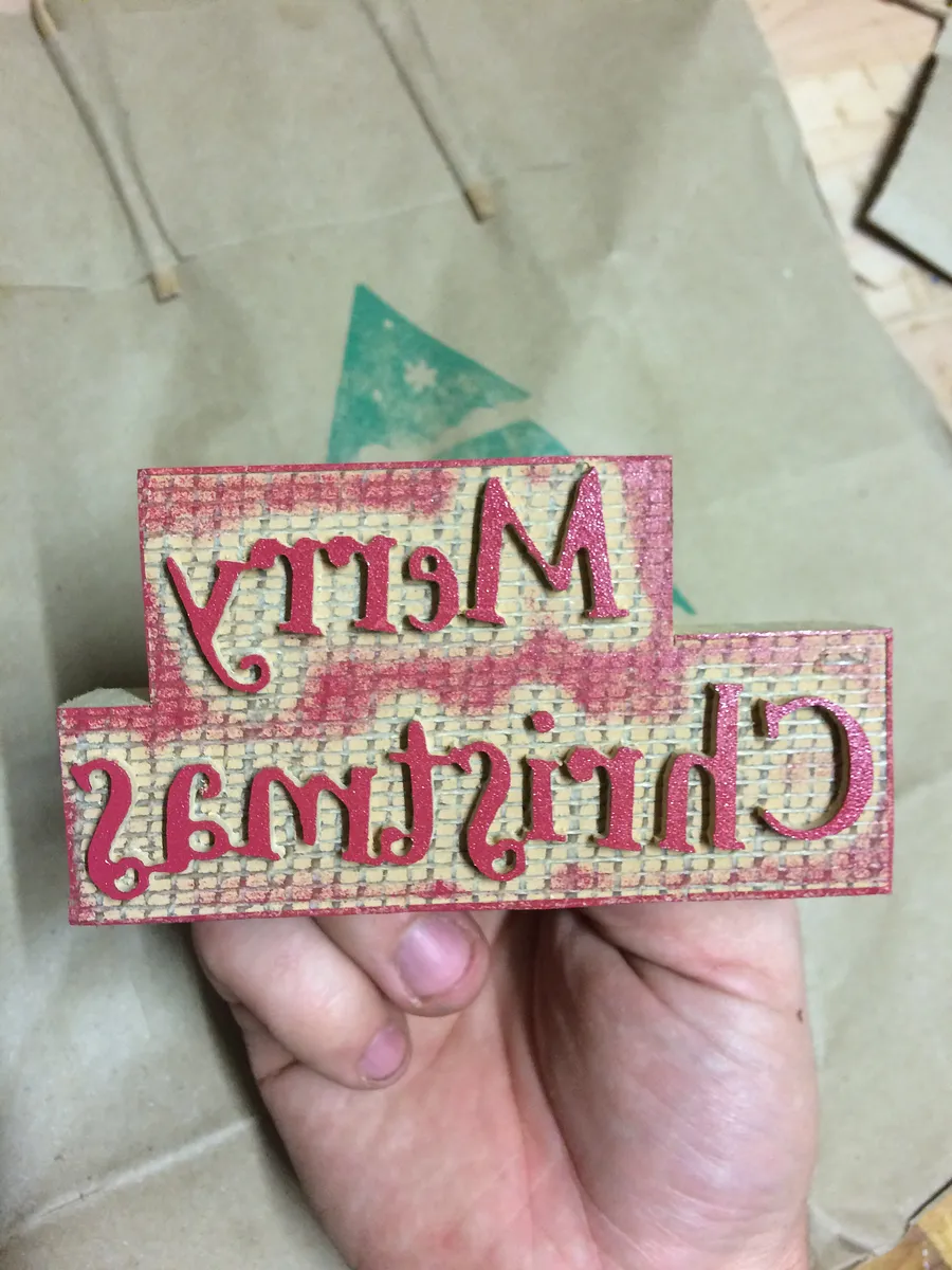 I also added background shapes to my Easel project and cut them out, leaving the stamp text and shapes in relief. To do this, set the stamp text and Christmas tree to 0" depth fill cut and create a shape behind it set to 1.2" or however thick your linoleum is!
