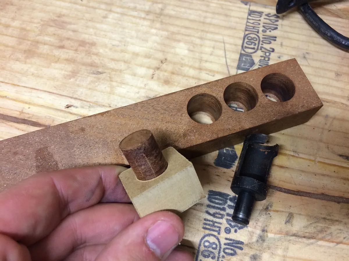I used a plug cutting bit to cut some dowels and attach them to the back of the stamps for easy access.