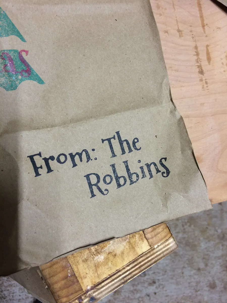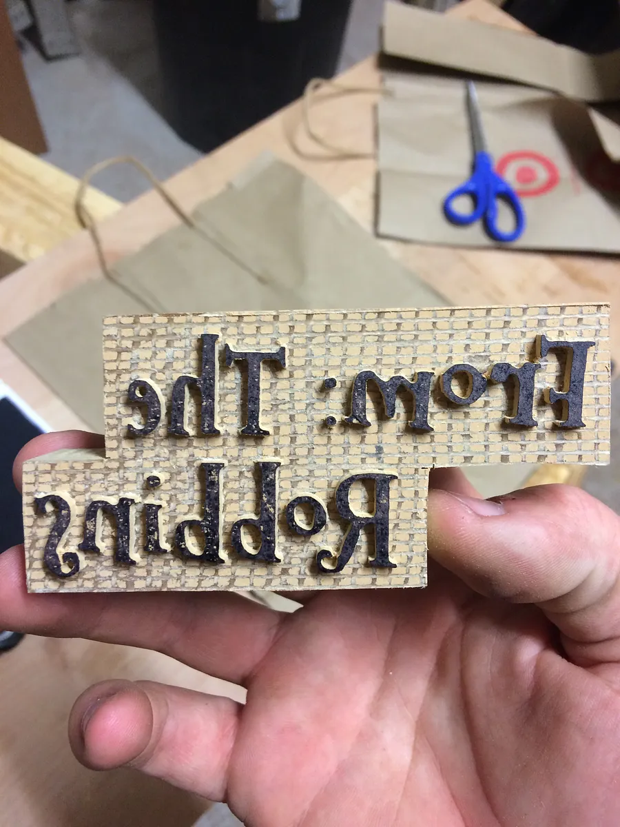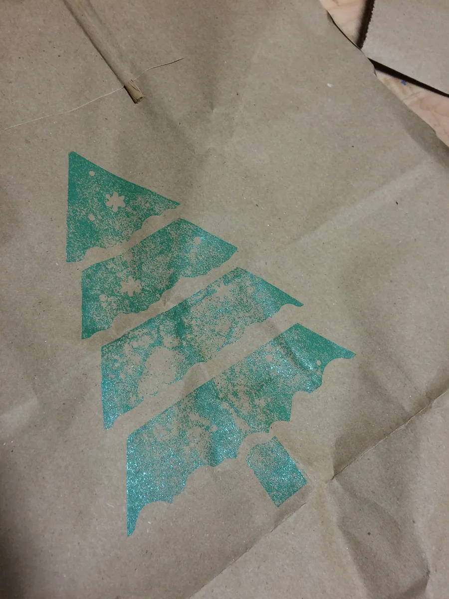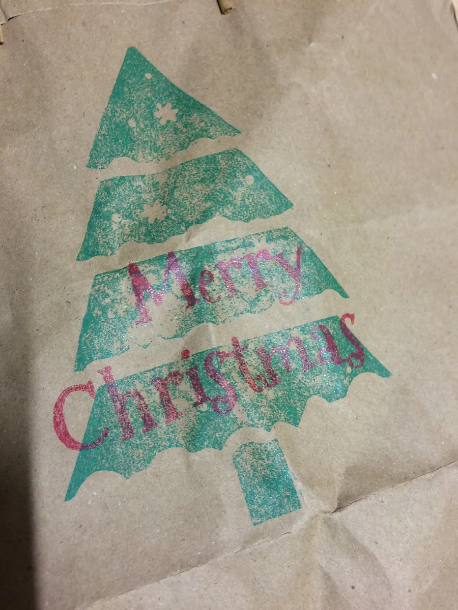 Using your beautiful new stamps and some store bought ink, start stamping those Christmas gifts!